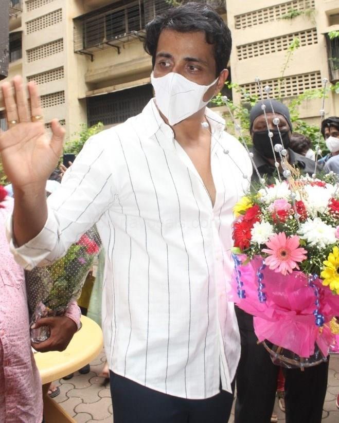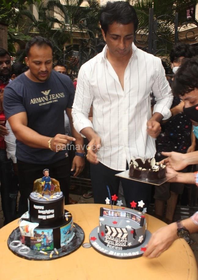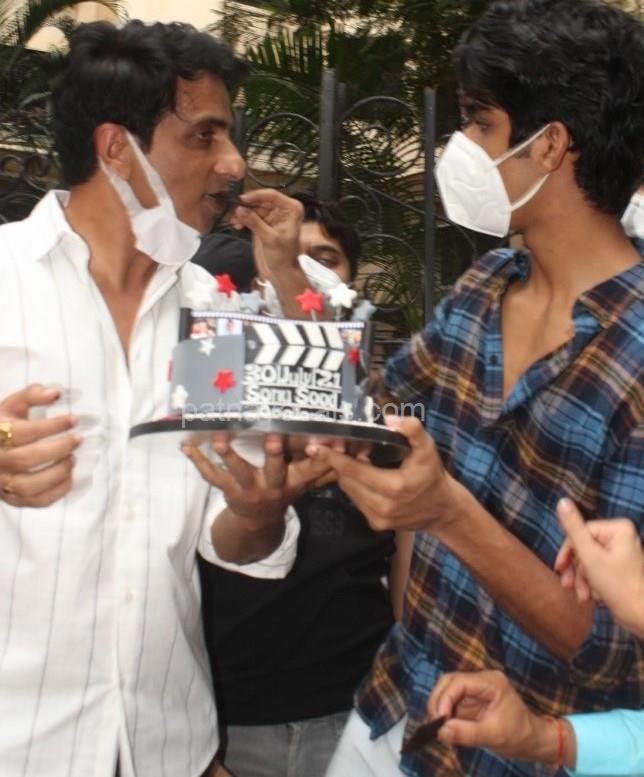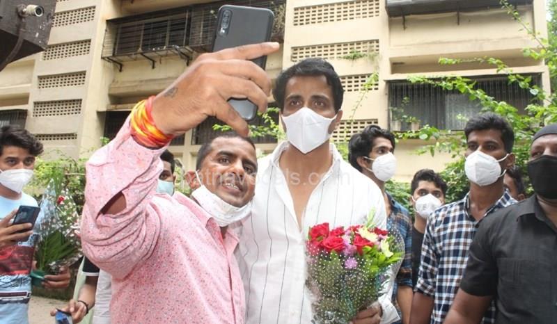 Sonu Sood Birthday Celebration With Media & Fans Outside Residence At Andheri